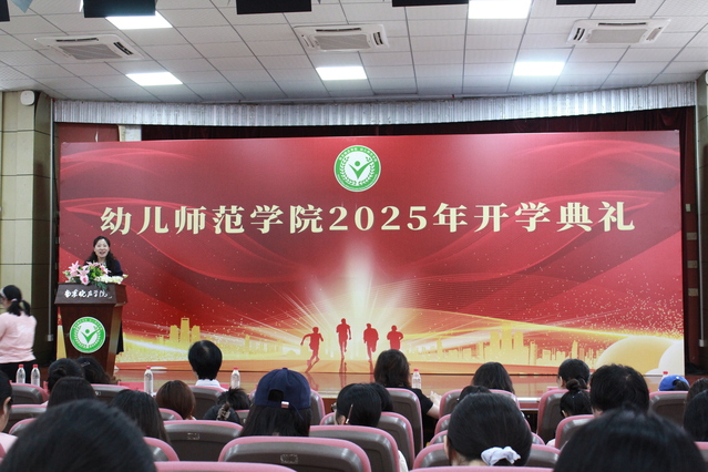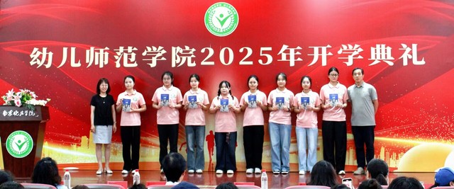 开学典礼在庄严的国歌声中拉开帷幕。学院院长袁宗金致欢迎辞,他给新生在学习、生活、做人做事等方面给予了很多宝贵的人生建议,同时他对新生们提出殷切希望,希望他们把“学为幼师,前行不止”牢记心间:以汗水换坚韧,以敬畏换成长,开启精彩的晓庄+、梦想+模式,为自己而战,为民族而育。新生班主任代表李宁婧老师作为教师代表发言,她寄语新生们要以笃实之心钻研理论、不惮其繁,以坚韧之志锤炼技能、不畏其艰,积极将自己打造成“会玩、专精、能扛压、传快乐”的幼教人。新生班的班级代表为班主任们送上鲜花表示感谢。高年级学生何曼青同学作为老生代表发言。她以自己的大学经历告诉新生们以勤学笃行夯根基,以实践创新铸本领,怀揣热爱与情怀,努力新时代“行知精神”的传人。中外25学前教育的黄敏轩同学分享了对学校的不解之缘,表达了自己对学前教育的热爱。学院党委书记胡辰和学院原副院长、关工委孙幼红为新生代表赠送书籍《中国幼教之父——陈鹤琴》。全体新生进行师范生宣誓,将“幼师人的职责和使命”铭刻于心。