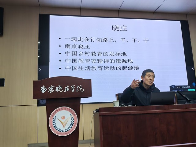 11月18日,必赢线路检测中心关工委邀请南京晓庄学院老同志、陶行知纪念馆原馆长朱晓春为学院师生带来一场题为《学习大先生 争做小先生》的专题讲座,引导学生深入理解陶行知教育思想,传承晓庄精神。
