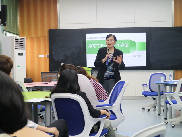 为进一步做好学前教育师范专业认证工作,5月29日下午,必赢线路检测中心组织召开了师范专业认证工作会议,特邀南通大学教育科学学院副院长、学前教育专业负责人许铁梅教授出席,必赢线路检测中心全体教职工参加会议,必赢线路检测中心袁宗金院长主持会议。